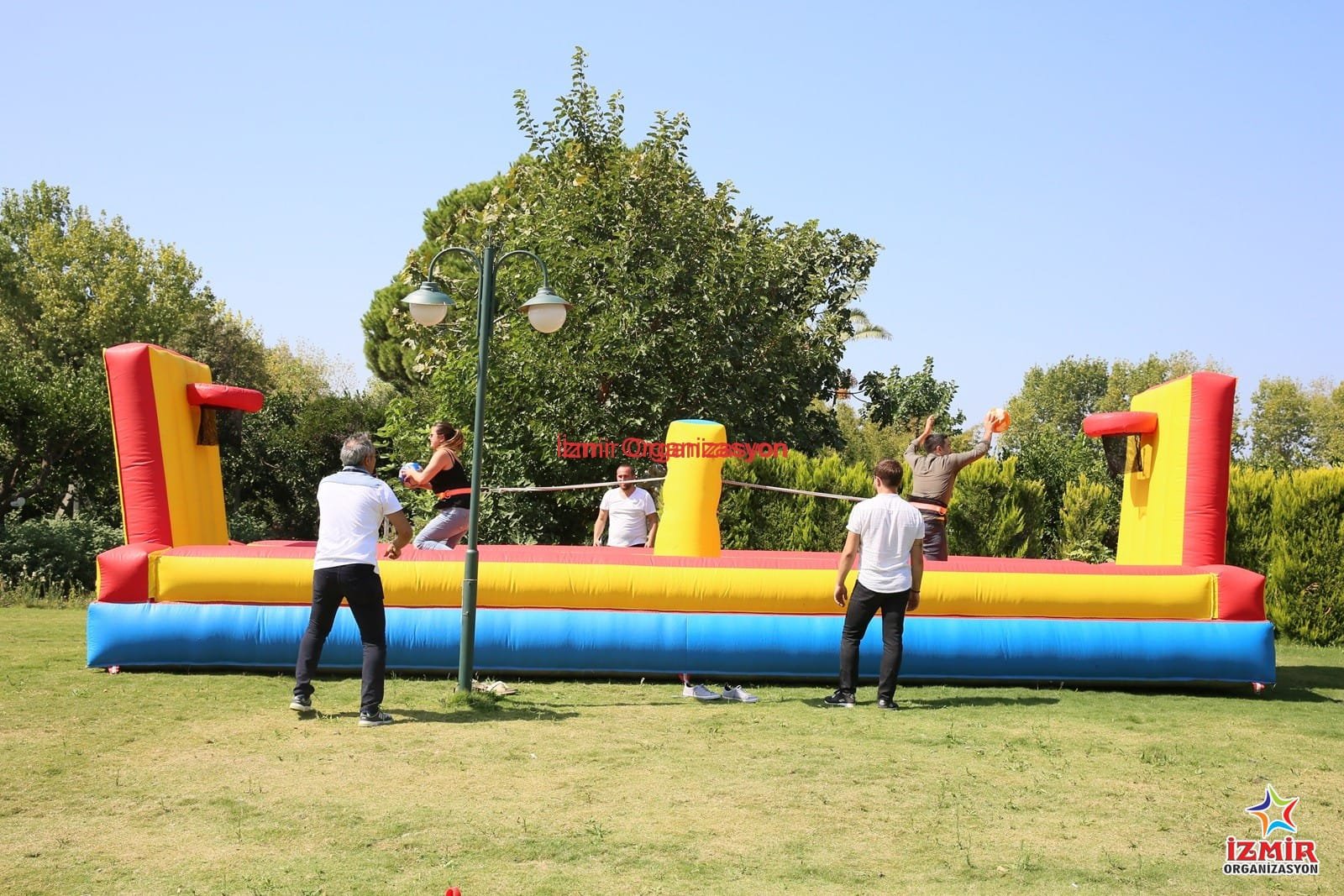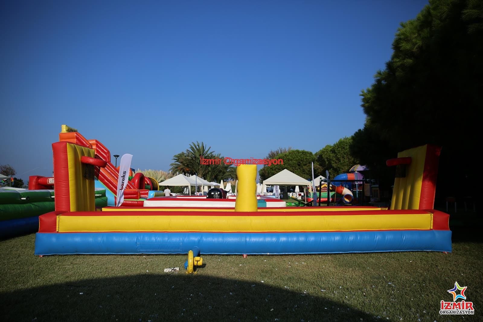İzmir Organizasyon firması olarak, İzmir başta olmak üzere Çeşme, Didim, Kuşadası, Kaş, Bodrum, Fethiye, Marmaris, Ayvalık, Muğla, Aydın, Balıkesir, Çanakkale, Kocaeli, İstanbul ve tüm Türkiye’ye şişme basket ev diğer şişme oyun parkurlarının kiralama, nakliye ve kurulum hizmetini veriyoruz. Organizasyonlarınıza renk katıyor, organizasyon boyunca hem çocuklara he de yetişkinlere sınırsız eğlence vadediyoruz. Hem güvenli hem de eğlenceli olan şişme oyun parkurlarımızı her türlü organizasyonlarınızda tercih edebilirsiniz. Şişme oyun parkurlarımızı ayrıntılı incelemek ve bilgi almak için www.izmirorganizasyon.com sayfamızı ziyaret edebilirsiniz.