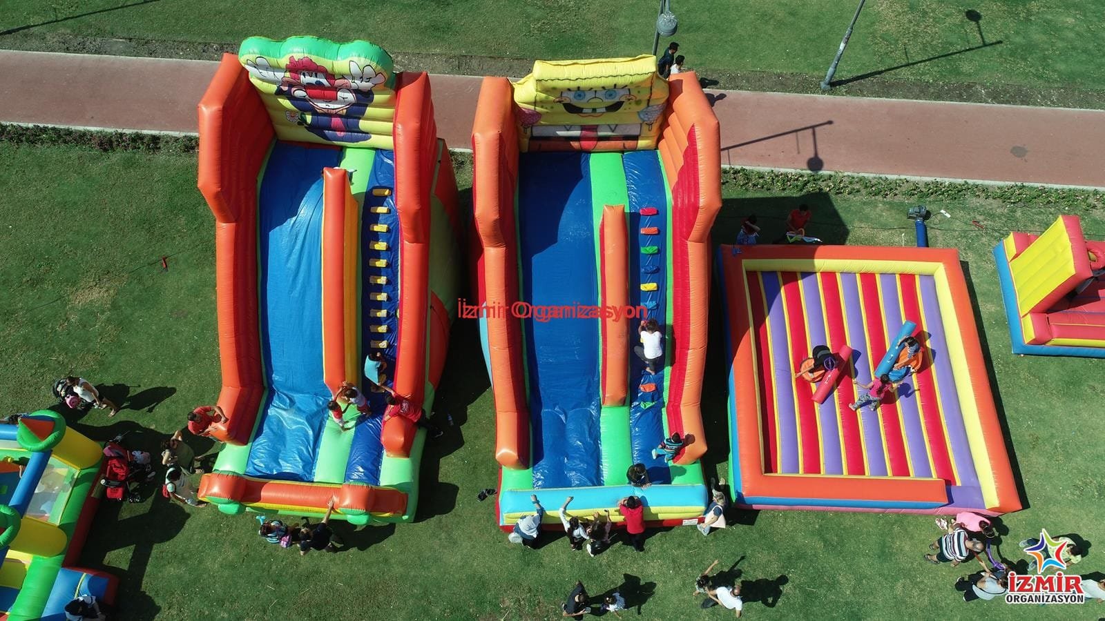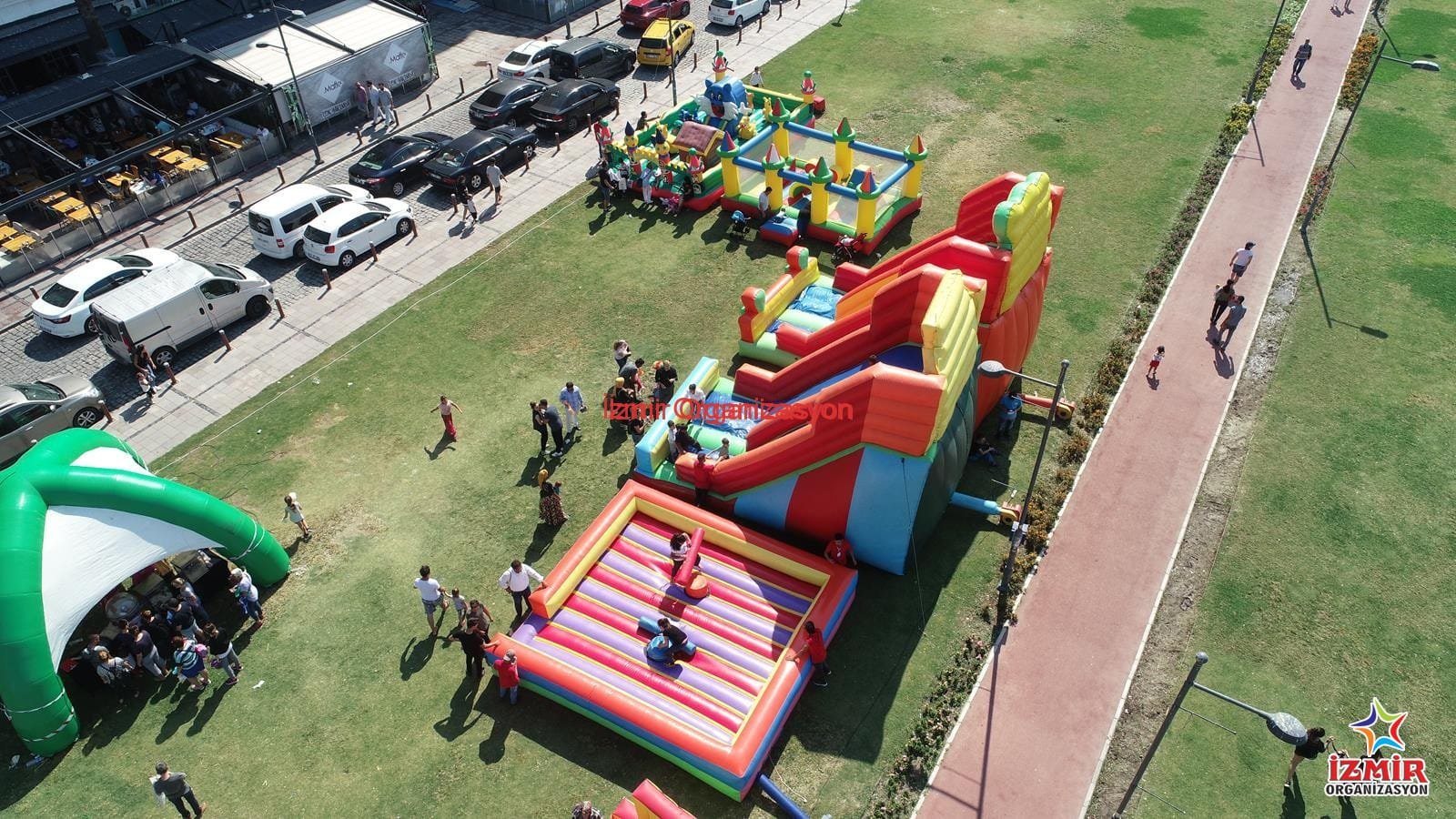 15 yıldan uzun süredir içinde bulunduğumuz organizasyon sektörünün inceliklerini her ayrıntısıyla biliyor ve siz değerli müşterilerimize, müşteri memnuniyeti garantili bir hizmet sunuyoruz. Kaliteli ekipmanlarla profesyonel bir hizmet sunarken, kendimizi geliştirmeye devam ediyoruz. Şişme oyuncak kiralama hizmetini sadece İzmir değil, Ege Bölgesi başta olmak üzere tüm Türkiye’ye getiriyoruz. Organizasyonlarınızın keyifli ve sorunsuz geçmesi için, teknik ekibimiz, animasyon ekibimiz ve organizasyon sorumlularımız iş başında, sizlere en iyi hizmeti sunmak için gayret içindeler.