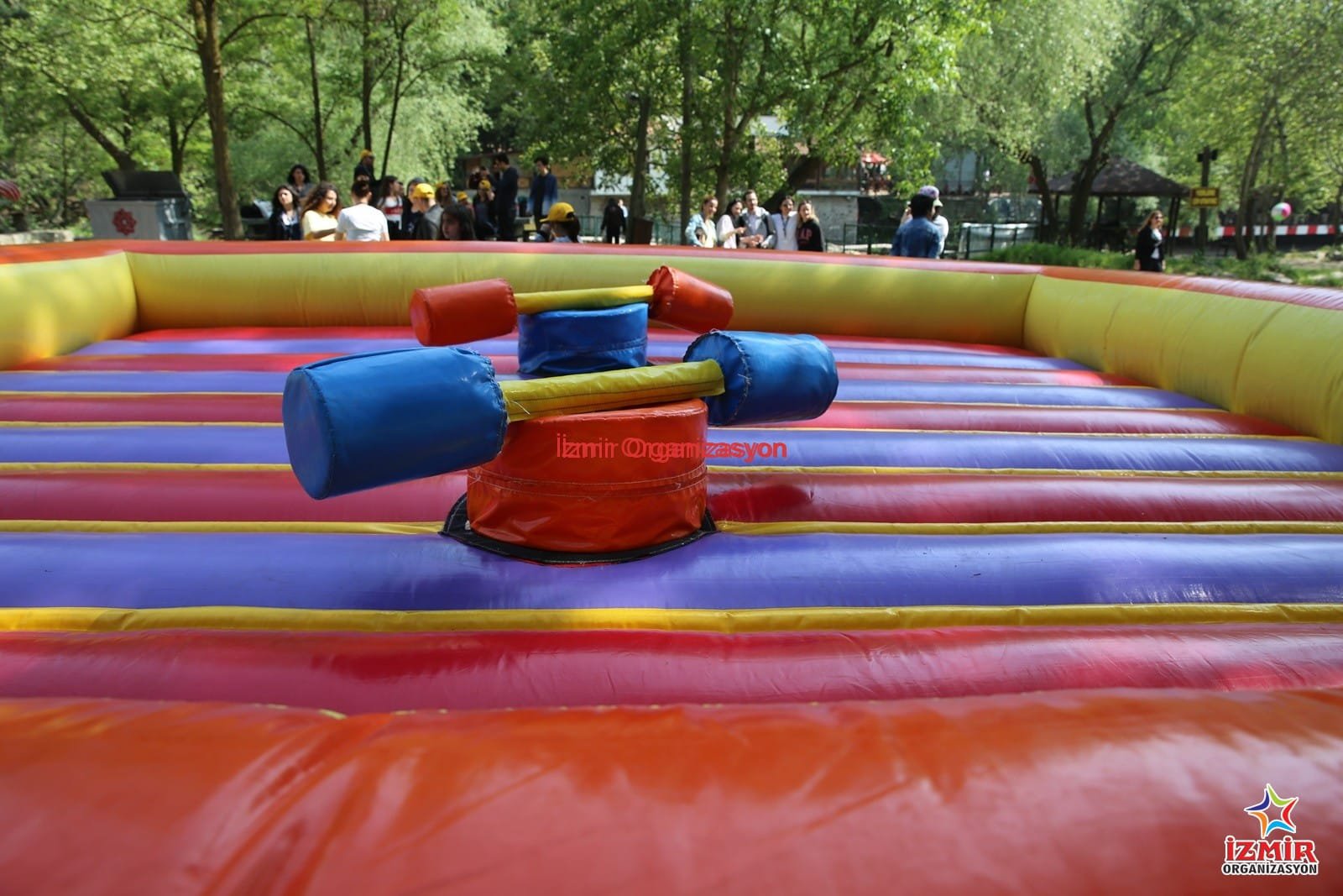Gladyatör şişme oyunu yetişkin misafirleriniz için tercih edebileceğiniz şişme oyun parkurudur. Şişme gladyatör oyunu ile ikili olarak mücadele edebileceğiniz gibi, ikişerli takım halinde de mücadele edebilirsiniz. İzmir Organizasyon firması olarak, gladyatör oyununu yerinde kiralama hizmeti veriyoruz.