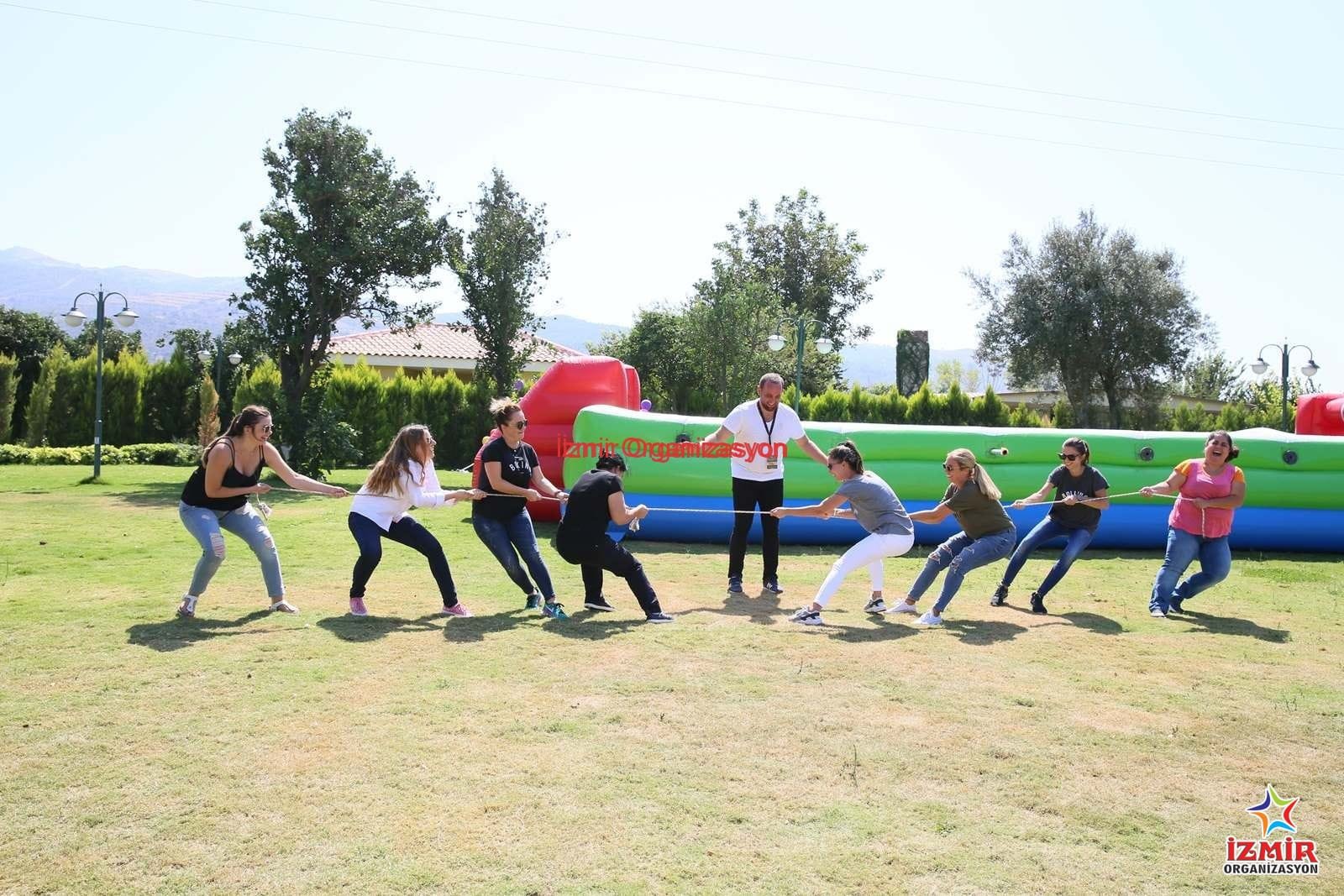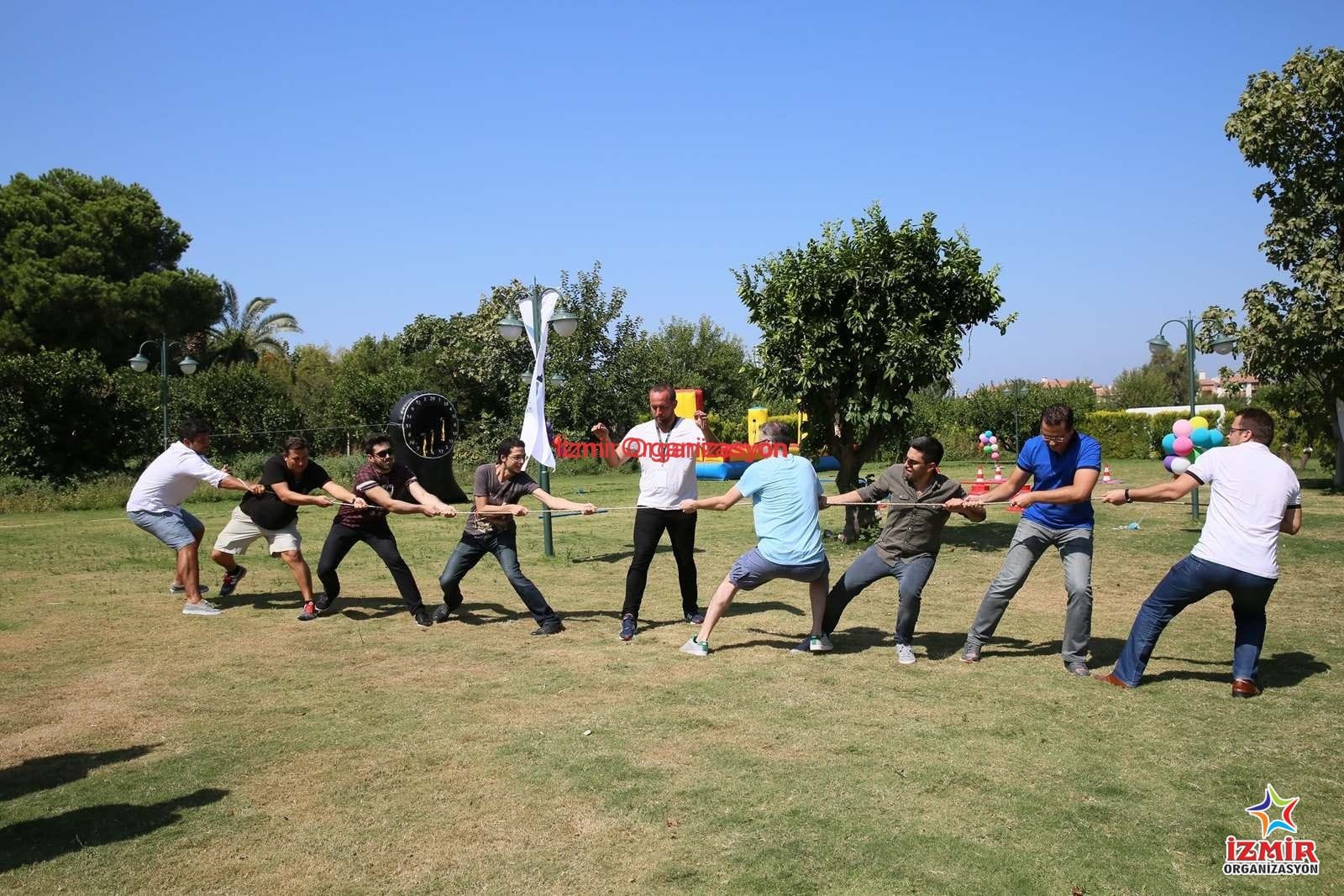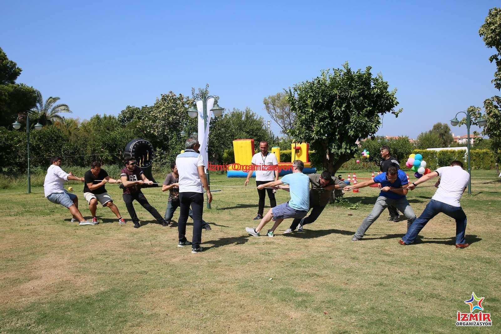 Eğlenceli, keyifli ve adrenalin dolu bir organizasyon geçirmek için, İzmir Organizasyon ekibinin bir dizi etkinlik programları var. Organizasyonunuzun türüne, organizasyon mekanının büyüklüğüne, açık alanda ya da kapalı alanda olmasına, organizasyona davet edilen katılımcıların sayısına göre çeşitli oyunlar, yarışmalar ve aktiviteler düzenliyoruz. Bireysel ve takım oyunları olarak adlandırdığımız ve sınıflandırdığımız oyunlardan biri de çocuk yetişkin herkesin bildiği ‘halat çekme’ oyunu.