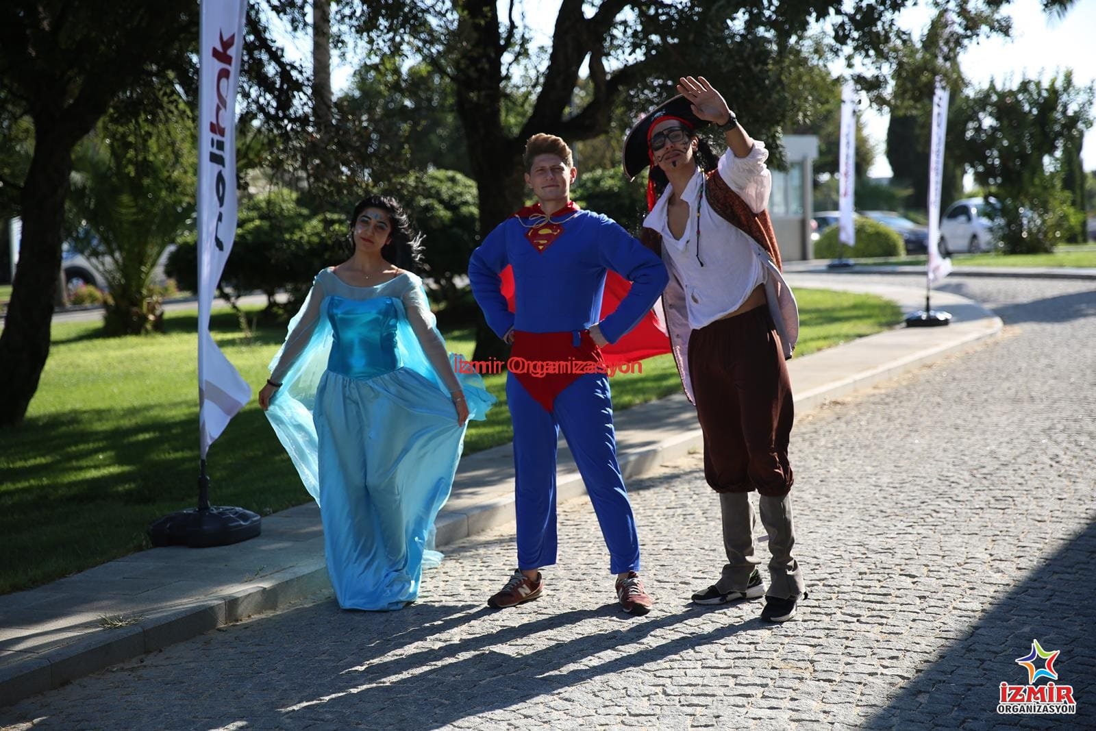 Kostümlü animatörlerimiz, çizgi film karakterlerinin, masal kahramanlarının eğitimli animatörlerimiz ile vücut bulmuş halidir. Çocukların en sevdiği kostümleri, kaliteli kumaşlardan özel olarak ürettik. Aksesuarlarla tamamladık. Sağlık Bakanlığı onaylı yüz boyalarımızla ve kostümlü karakterlere uygun makyajlarla da çocukların karşısına çıkmaya hazırlanıyoruz. Korsan, Cinderella, Pamuk Prenses, Minnie Mouse, Elsa, Anna, Spiderman, Superman ve Batman gibi çocukların en sevdiği karakterleri, sizler için temin ediyoruz.Kostümlü karakterlerimiz de, palyaçolarımızın yaptığı aktivitelerin aynısını yapmaktadırlar. Palyaço ve kostümlü animatörlerimiz, İzmir Organizasyon ofislerinde aşamalı eğitimlere tabi tutuluyor. Dans figürleri, yüz boyama teknikleri, sosis balon katlama konusunda animasyon eğitimcilerimiz tarafından eğitiliyorlar.