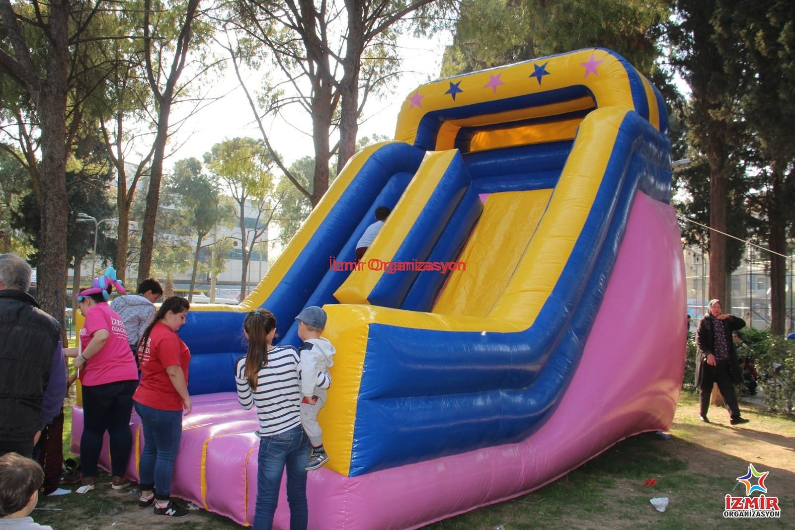 Pembe şişme kaydırak, hem rengi hemde görüntüsü itibariyle çocukların ilgi odağı olmayı başaran şişme oyuncaklardan bir tanesidir. Pembe şişme kaydırak, İzmir Organizasyon şirketimiz bünyesinde bulunmakta ve ofisimizin hemen yanı başındaki depoda muhafaza edilmektedir. Böylelikle istediğiniz anda sizlere kolayca ulaştırılmaktadır. İzmir Organizasyon şirketimiz, deneyimli ve profesyonel çalışanlarıyla İzmir başta olmak üzere Türkiye genelinde düzenleyeceğiniz organizasyonlarda sizlere hizmet vermektedir. Şişme çocuk oyunlarının yanı sıra yetişkinler için temin ettiğimiz eğlenceli oyun parkurlarını da sizlere ulaştırıyoruz. Hem çocuklarınıza hemde sizlere unutulmayacak bir gün vaad ediyoruz. Pembe şişme kaydırak ve oyun parkurlarımızın tamamı için nakliye, kurulum ve sivil gözetmen dahil hizmet veriyoruz. Piknik organizasyonu, aile günü etkinlikleri, okul şenlikleri, festival organizasyonu, açılış organizasyonu gibi düzenleyeceğiniz organizasyonlarda şişme oyuncak kiralama hizmetlerimize yer verebilirsiniz. İzmir Organizasyon şirketimizden oyun parkuru kiralama hizmetinin yanı sıra palyaço kiralama, ses sistemi kiralama, masa ve sandalye kiralama, çocuk oturma grubu kiralama, süsleme, animasyon ekibi kiralama hizmetleri de talep edebilirsiniz.