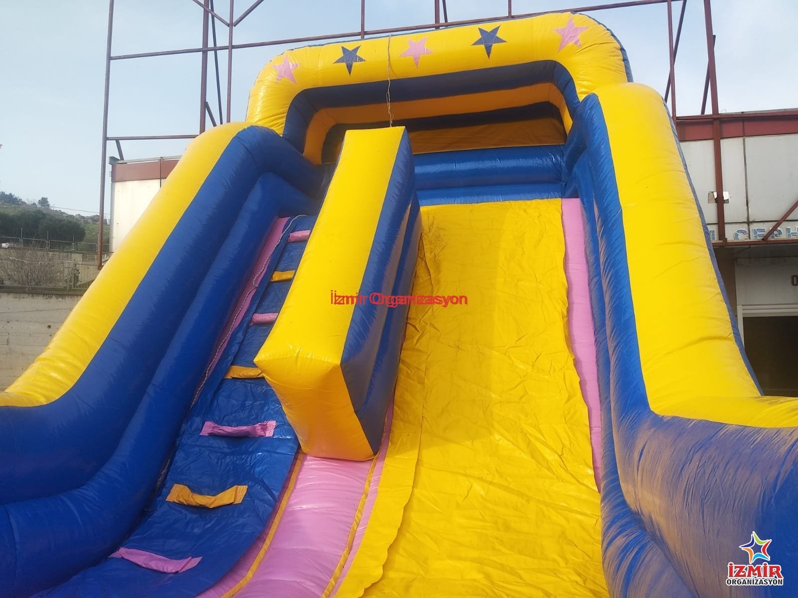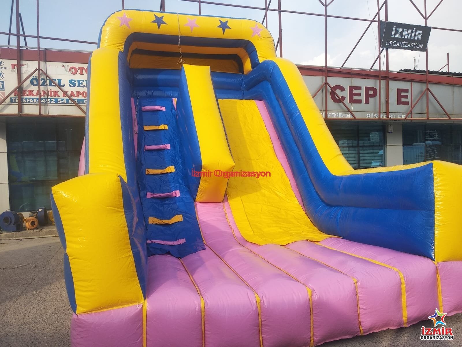 Pembe şişme kaydırak, çocukların eğlenceli vakit geçirdiği oyun parkurlarından birisidir. İzmir Organizasyon şirketimizden yapmış olduğunuz şişme oyuncak kiralama hizmetlerine parkurların nakliyesi, kurulumu ve başında 1 sivil gözetmen dahildir. Şişme kaydırak boyutları dikkate alınarak açık alanda ya da kapalı alanda kurulabilir. Parkurun kurulumu için düz bir zemine ihtiyaç vardır. Uygun mekana yerleştirilen oyun parkuru, profesyonel ekibimiz tarafından şişirilerek kurulumu yapılır. İki kısımdan oluşan kaydırağın bir tarafında şişme merdivenler sayesinde yukarı çıkılır, diğer tarafında ise kaydırak kısmı bulunur. Güvenli olması açısından kaydırak kısmının yanlarında bariyerler bulunur. Kaydırağın zemin kısmı ise yüksek şişme bariyer ile kapatılmıştır.