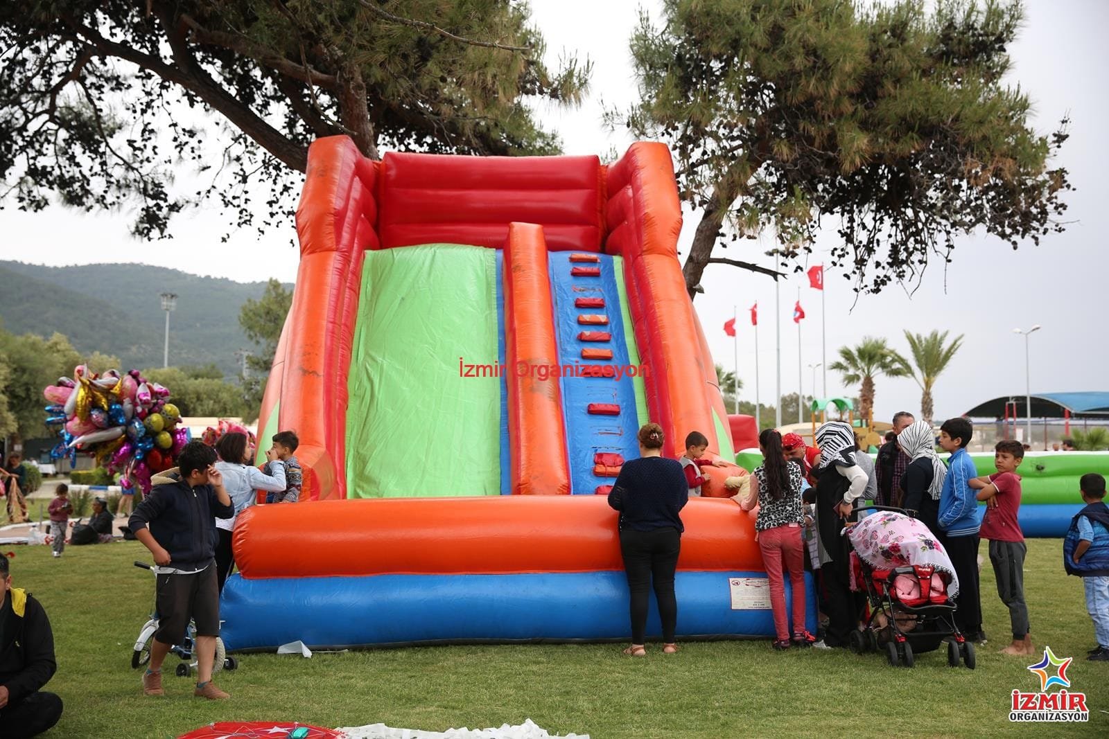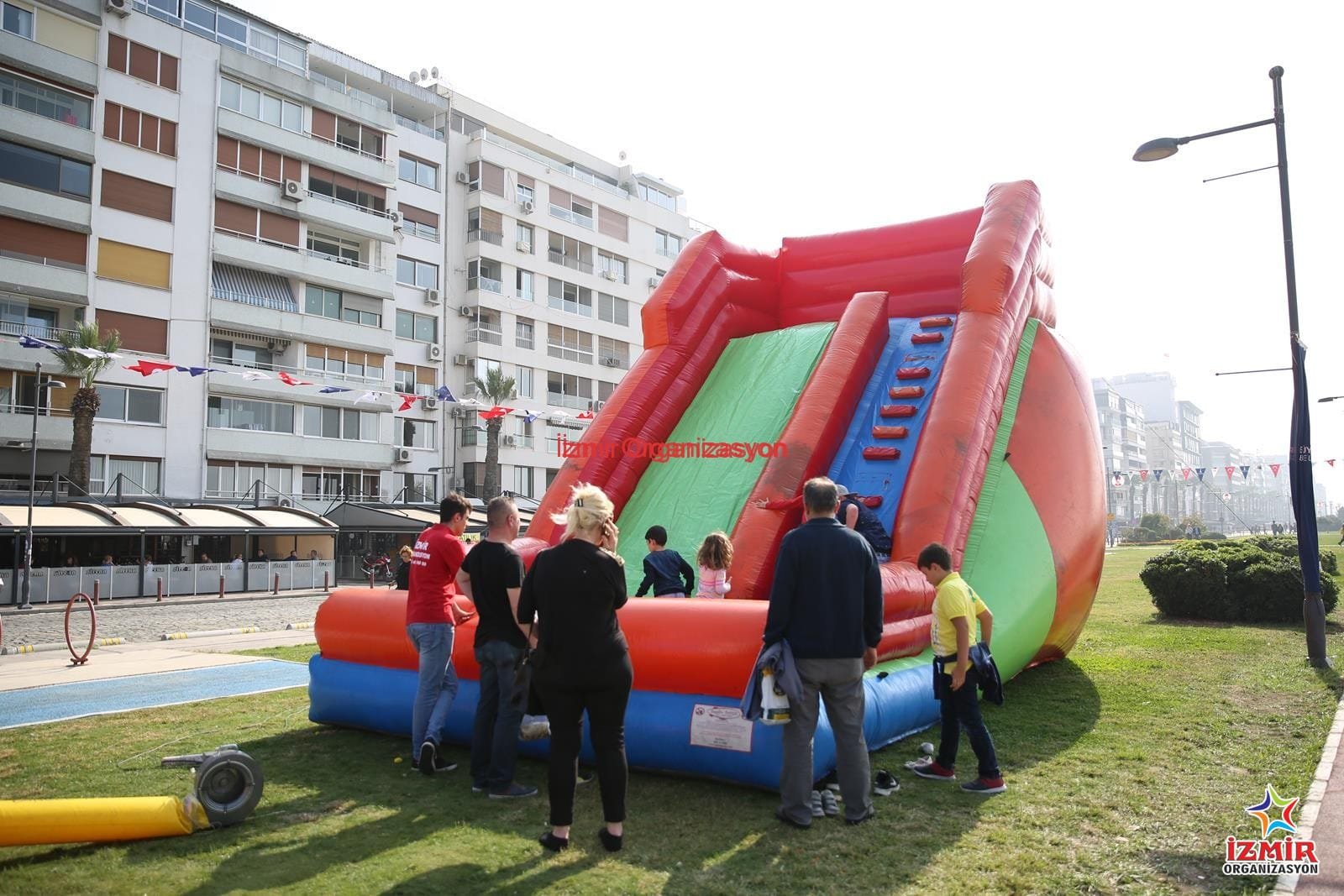 Renkli kaydırak ile misafirlerinize eğlenceli anlar yaşatın. Şişme kaydırak çok yer işgal etmeden çocukları eğlendirebilen bir şişme oyun parkurudur. İzmir Organizasyon şirketi olarak şişme oyun parkuru kiralama hizmetini yerinde vermekteyiz.
