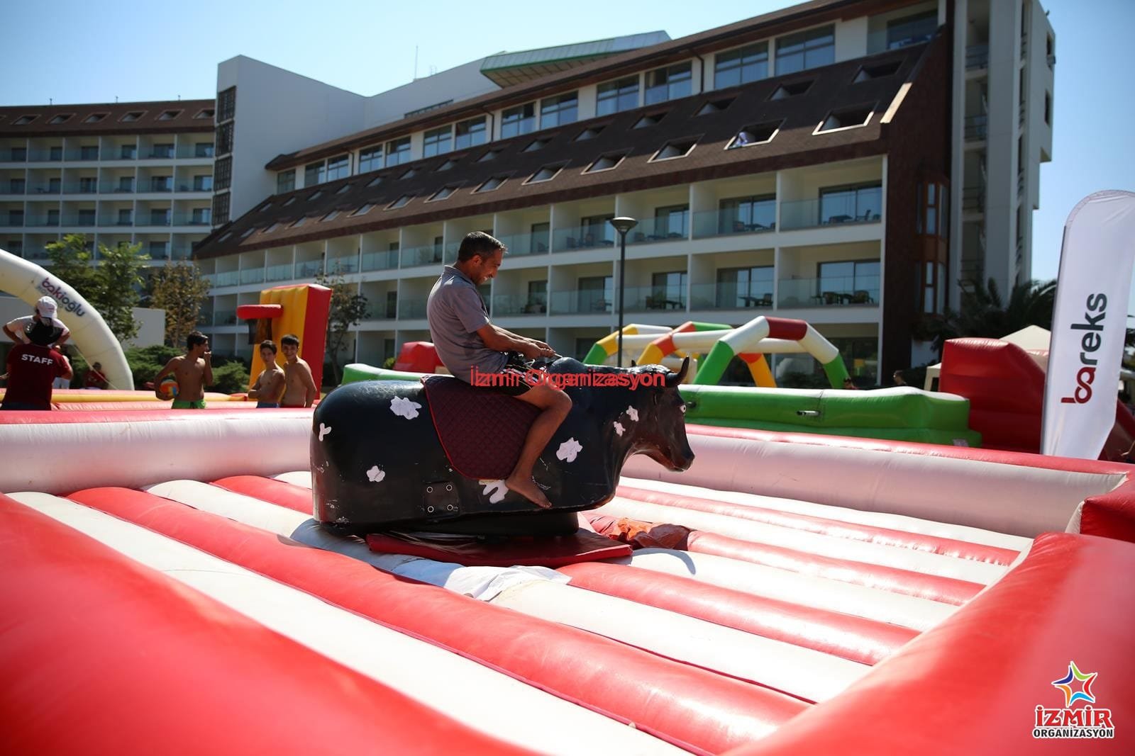 Organizasyonların en eğlenceli oyun parkurlarından biri olan rodeo 15 yaş ve üzeri için tercih edebileceğiniz bir oyuncaktır. Rodeonun olduğu bir organizasyonda eğlence ve adrenalin kaçınılmazdır. İzmir Organizasyon firmamız yalnızca İzmir değil, İzmir ve çevresinde, Ege Bölgesi başta olmak üzere Türkiye’nin her yerinde gerçekleştireceğiniz organizasyonlarınız için rodeo kiralama hizmetinden yararlanabilirsiniz.
