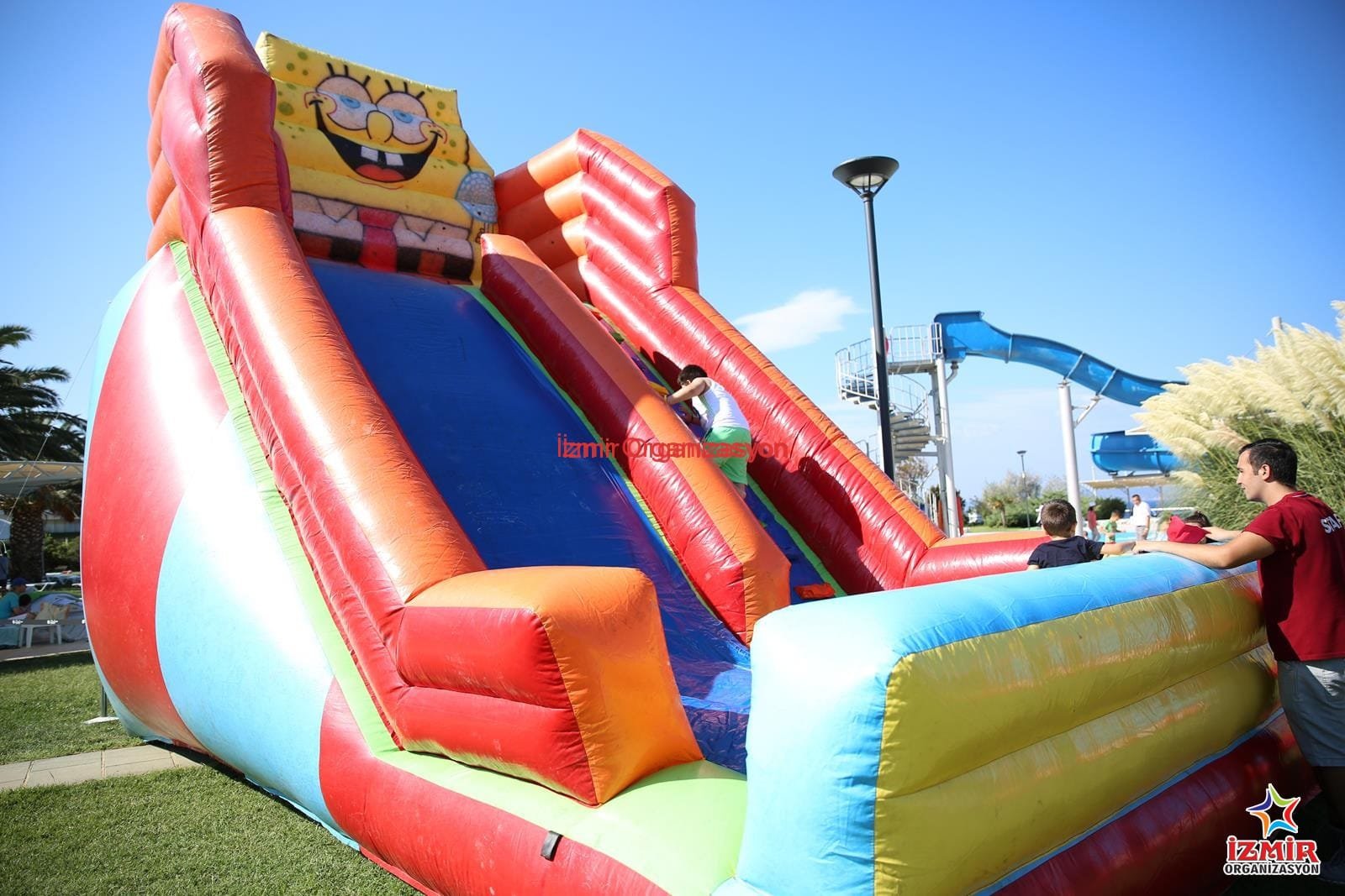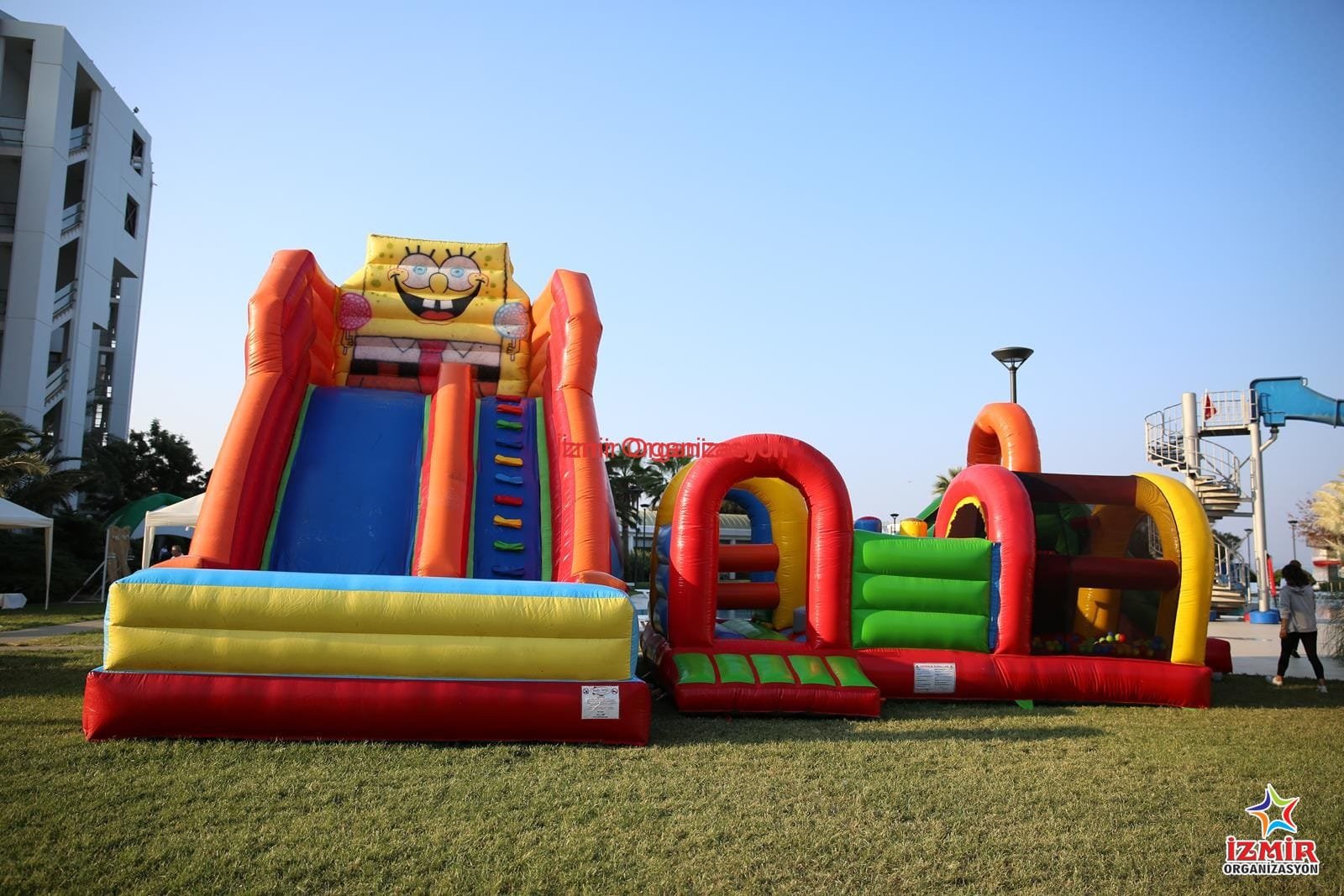 Sünger bob kaydırak, her yaş çocuk grubu için uygun olan bir şişme oyun parkurudur. Çeşitli etkinlikleriniz ve organizasyonlarınızda, İzmir Organizasyon olarak şişme oyun parkuru, şişme oyuncak kiralama hizmeti veriyoruz. Şişme oyuncak kiralama hizmetini, nakliye ve kurulum dahil bir şekilde sunuyoruz.