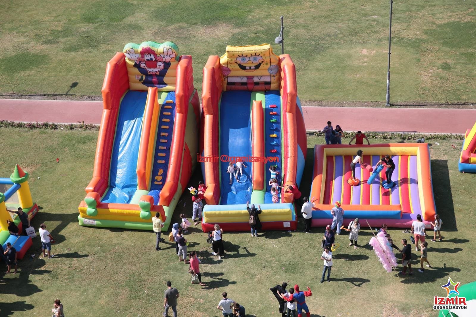 Şişme oyuncaklarımızla, doğum günü organizasyonlarınızda, çocuklarınız ve arkadaşları çok keyifli vakit geçirecekler. Sünger bob şişme oyun parkuru, aynı zamanda açılış organizasyonları, Belediye etkinlikleri, festival ve şenlik organizasyonu gibi organizasyonlarda çocukların eğlencelerini garantilemek adına tercih edebileceğiniz şişme oyun parkurumuzdur.